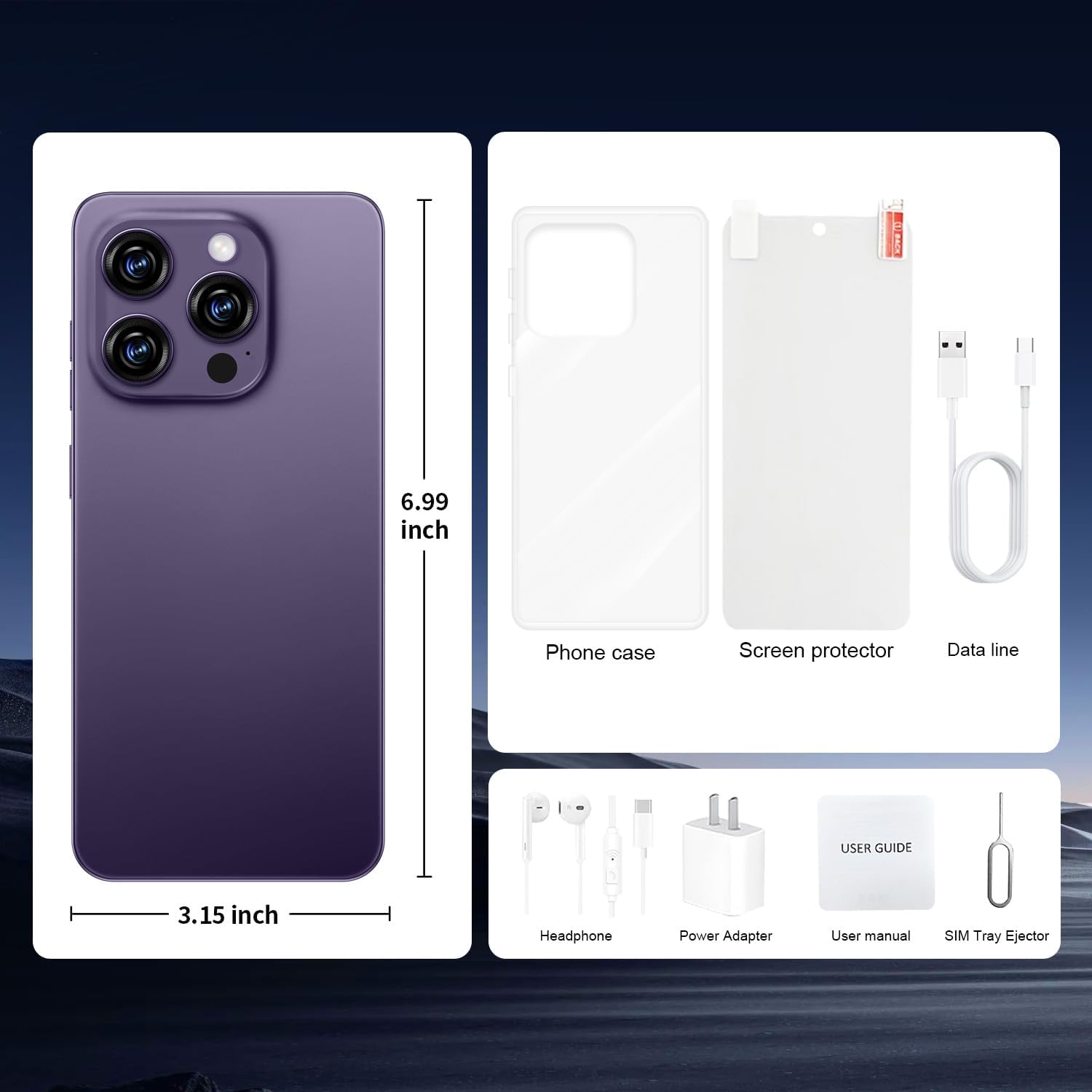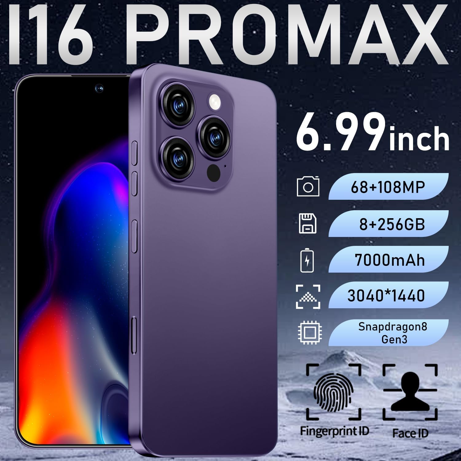 【Dual SIM and Global Band 5G Phone】Dual SIM & 3 Card Slots, I16 ProMAX Smartphone adopts 2+1 card slot design, supports two 5G SIM cards, you can use the second number without carrying an extra mobile phone. Excellent transmission speed allows you to freely explore the online world.