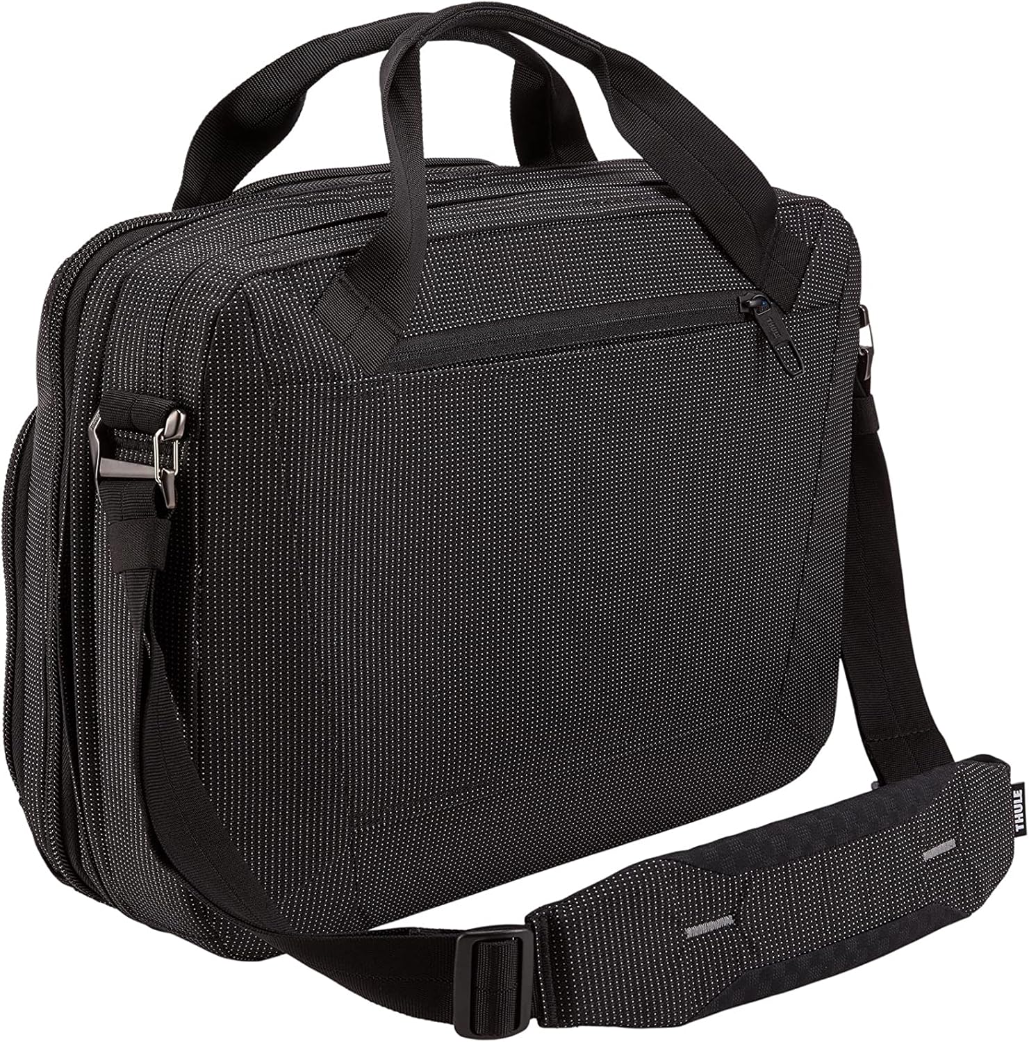 A functional laptop bag that expands 2. 5 inch for additional space and protects everything from electronics to identity